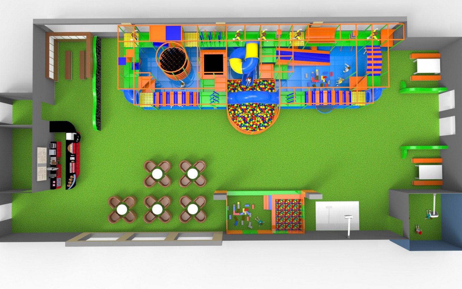 Wykorzystujemy nowoczesną technologię 3D, aby stworzyć dla Państwa spersonalizowany projekt sali zabaw. Nasz zespół zadba o każdy detal aranżacji wnętrza, uwzględniając: